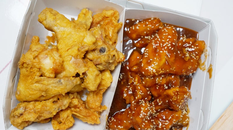 매콤한 후라이드인데, 그렇게 매워보이지는 않지만 일반 후라이드보다 조금 더 붉습니다.