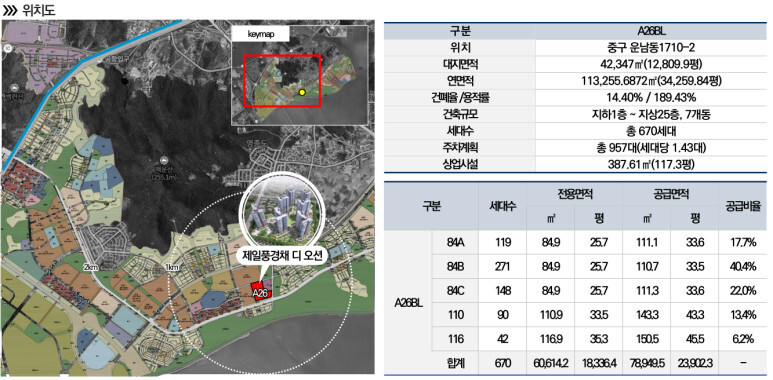 A26블럭 84㎡ ~ 116㎡ 중형계획 -> 84㎡ 538세대(80%), 85㎡ 이상 132세대 구성(20%)