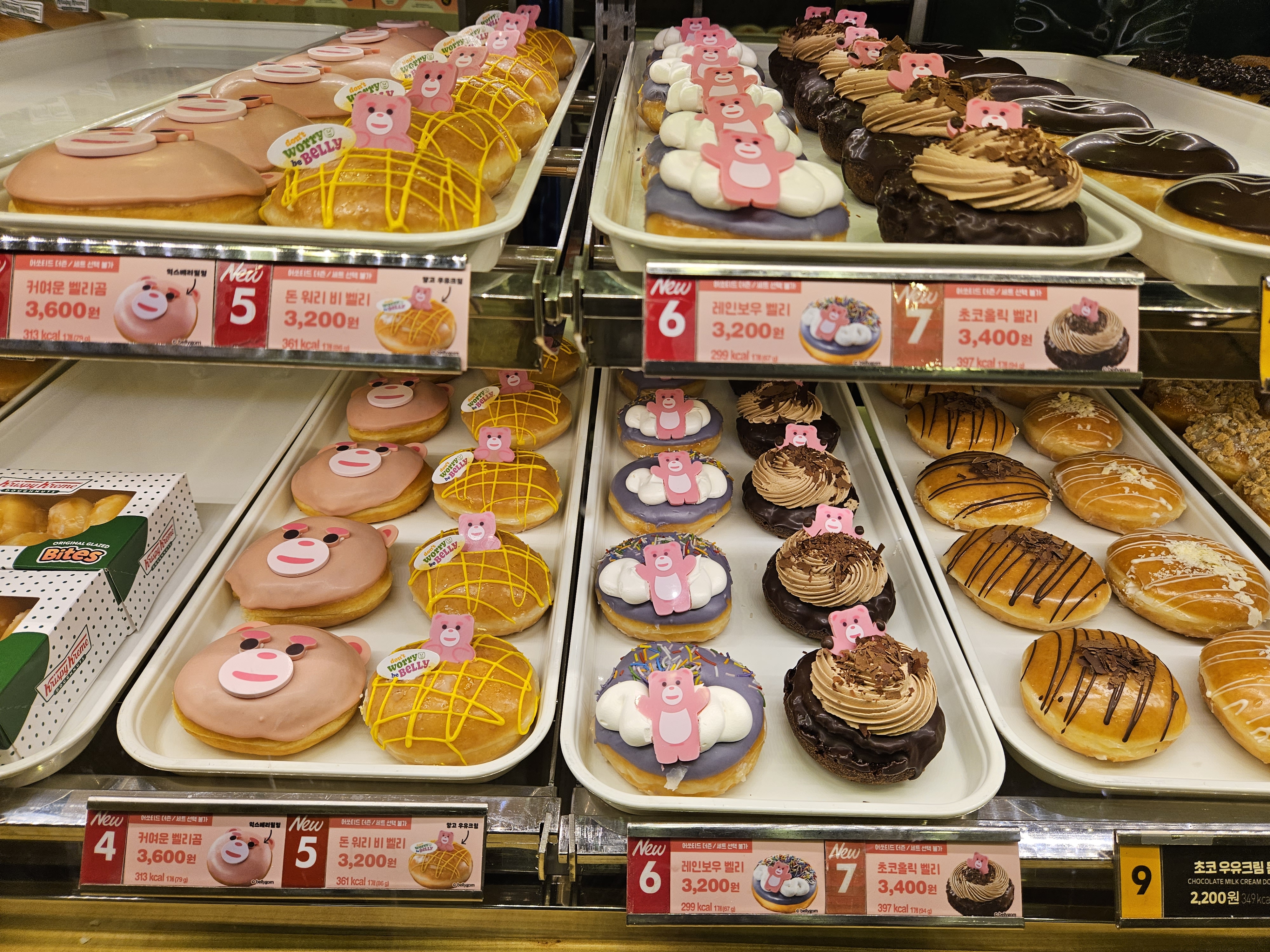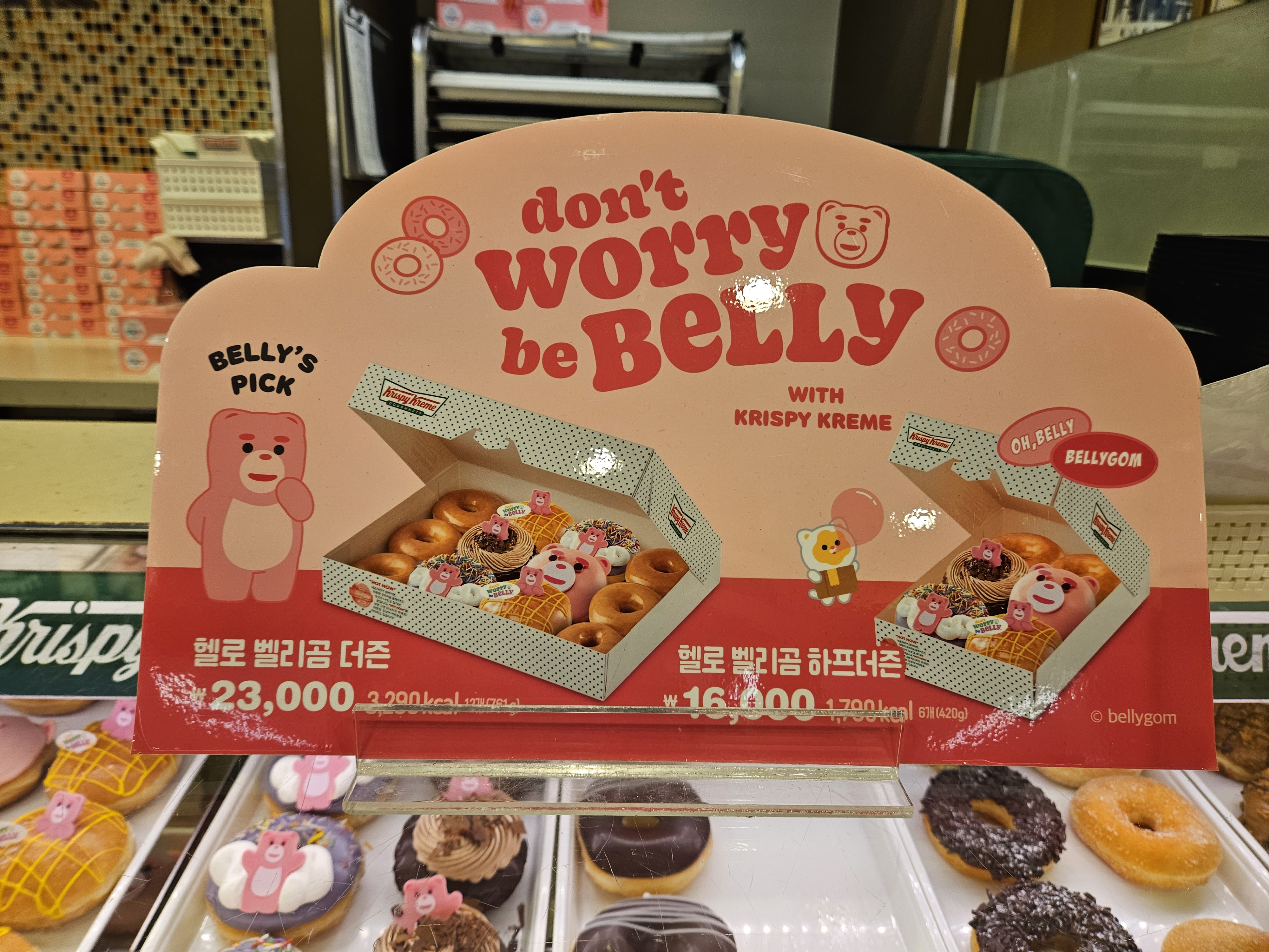 벨리곰초콜릿 간판이 있는 망고우유크림 도넛 ‘걱정마비벨리’