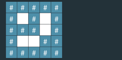 1. 맵은 변의 길이가 n인 정사각형 배열 형태이며, 각 셀은 “공백”(” “) 또는 “벽”(“#”)의 두 가지 유형으로 구성됩니다.