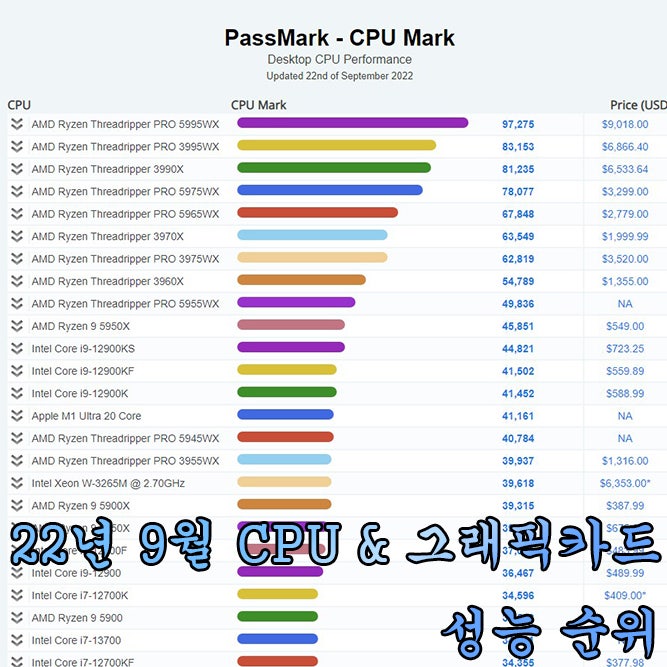 7월 기준 Intel, AMD 노트북 등의 CPU 성능 순위