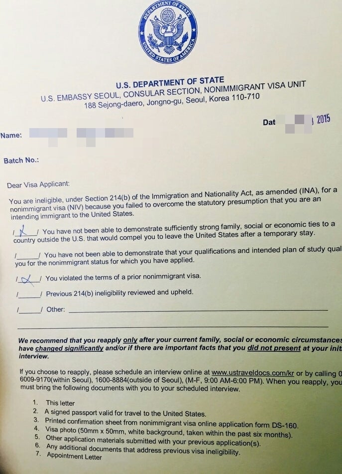 단, 미국 비자 신청 시 영사관에서 미국 입국을 거부하거나 허위 ESTA를 작성하여 미국 입국을 시도하여 비자를 거부할 수 있으므로 신중하게 비자 신청을 하시는 것이 좋습니다. 영사는 당신이 그렇게 생각하지 않기 때문에 허위진술과 위증과 싸우는 데 매우 능숙합니다. 따라서 당신이 틀렸다는 것을 인정하고 성찰하고 있음을 보여줘야 합니다.거절당한 이력이 있다면 철저히 대비해야 합니다.
