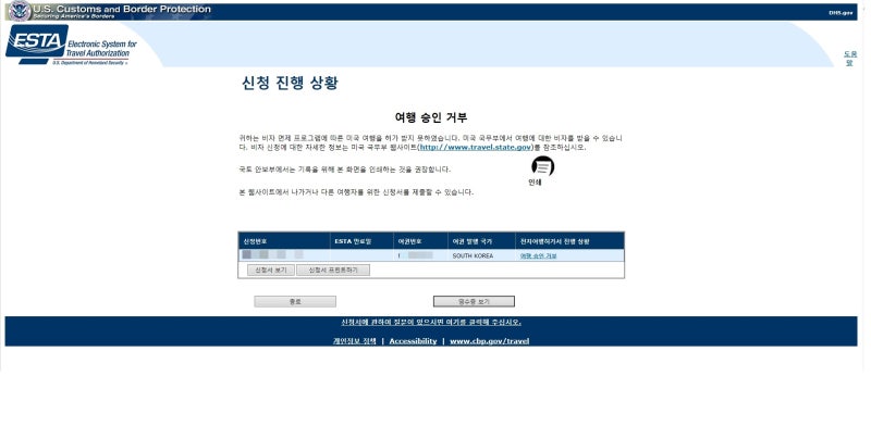 미국을 떠나려면 왕복 항공권, 여권 및 ESTA 허가증이 필요합니다. 한국인의 경우 미국 여행 목적이 별도의 미국 관광비자를 신청하지 않고 ESTA 허가를 받는 것이라면 ESTA 허가증은 한국 국민에게 문제 없이 쉽게 발급된다. 2년 동안 유효한 ESTA가 있고 최대 90일까지 체류할 수 있습니다.여행을 원하는 친구는 참고할 수 있습니다.ESTA가 거절된 경우